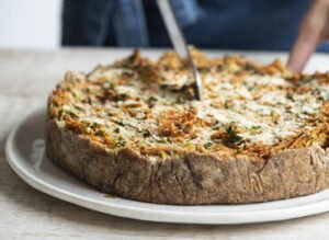 Masa de tarta saludable sin grasa, ideal para rellenos livianos, con harinas integrales y opción sin gluten.