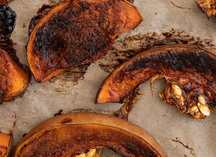 Con respecto a la forma de cocción, siempre recomiendo el zapallo asado entero porque es una forma de tener sus pieles tostadas, de asar sus semillas a la par y de ahorrar recursos. En la cocción de horno o salteado, sus azúcares se caramelizan, lo que resalta su acidez y convierte a este vegetal en un verdadero manjar.