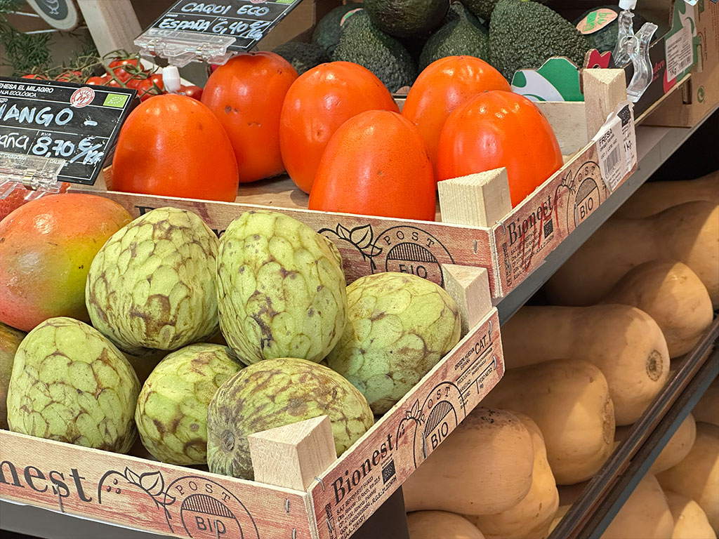 En mi recorrido por el mercado me encontré con pescaderos que conocen cada especie que venden: de qué puerto llega, cómo se pesca, cómo reconocer su frescura. Encontré productores que trabajan con sus propios cultivos, que conocen y respetan los ciclos del suelo y de la temporada, defendiendo sabores reales, no estandarizados. Y puestos donde brillan productos con sellos DOP (Denominación de Origen Protegida) e IGP (Indicación Geográfica Protegida), certificados que garantizan origen, autenticidad y calidad.