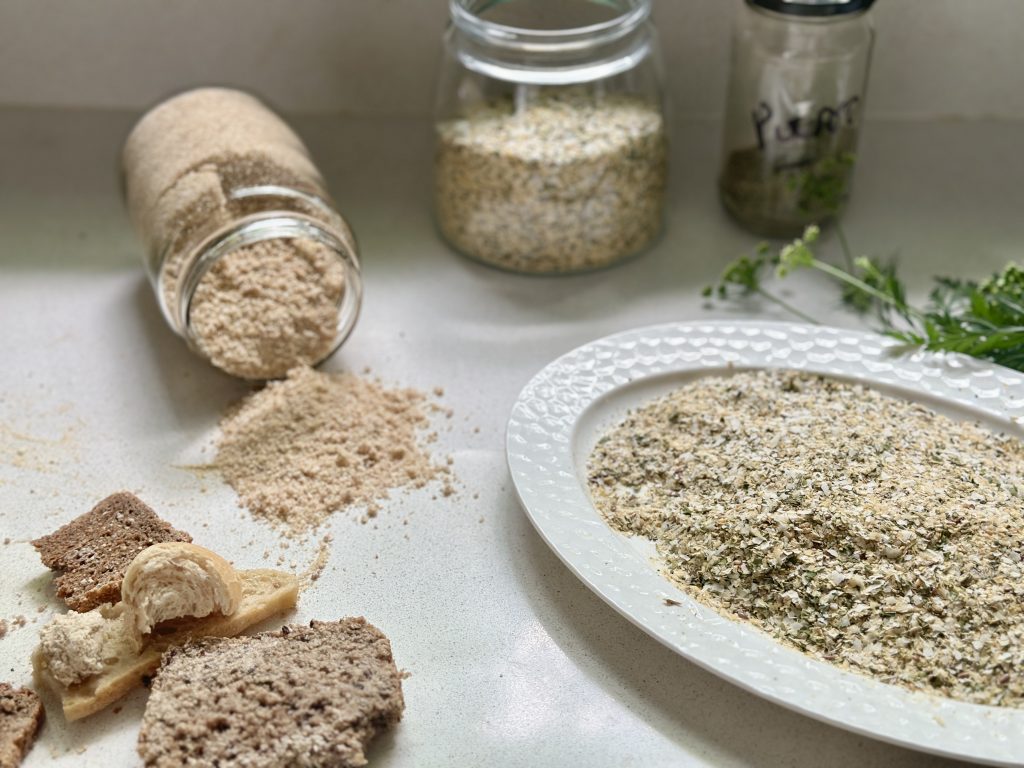 Otra opción: rallar o procesar el pan fresco y colocarlo a deshidratar. Podés hacerlo en un deshidratador, en horno muy suave o dentro de una bolsa de lienzo moviéndola dos veces al día.