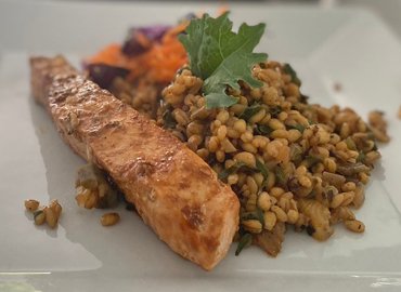 Las pencas del kale pueden picarse finito y sumarse a la cebada junto con los granos. También podés usar las rodajas de limón cocidas para condimentar ensaladas frías al día siguiente.