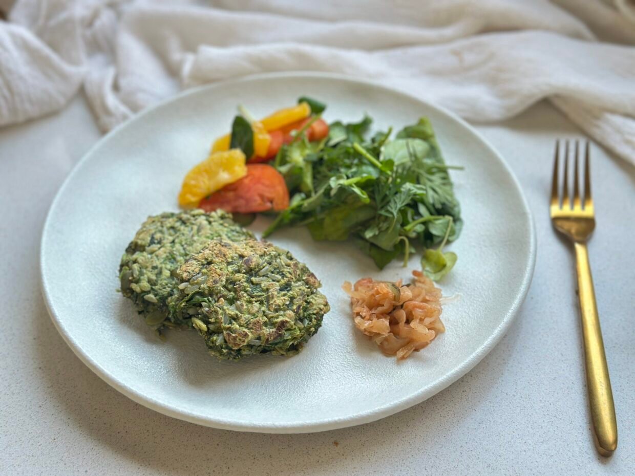 Medallones de espinaca, semillas y arroz integral