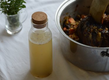 Las verduras utilizadas para el caldo pueden luego procesarse con un poco del mismo caldo y transformarse en una sopa crema base para otra comida.
