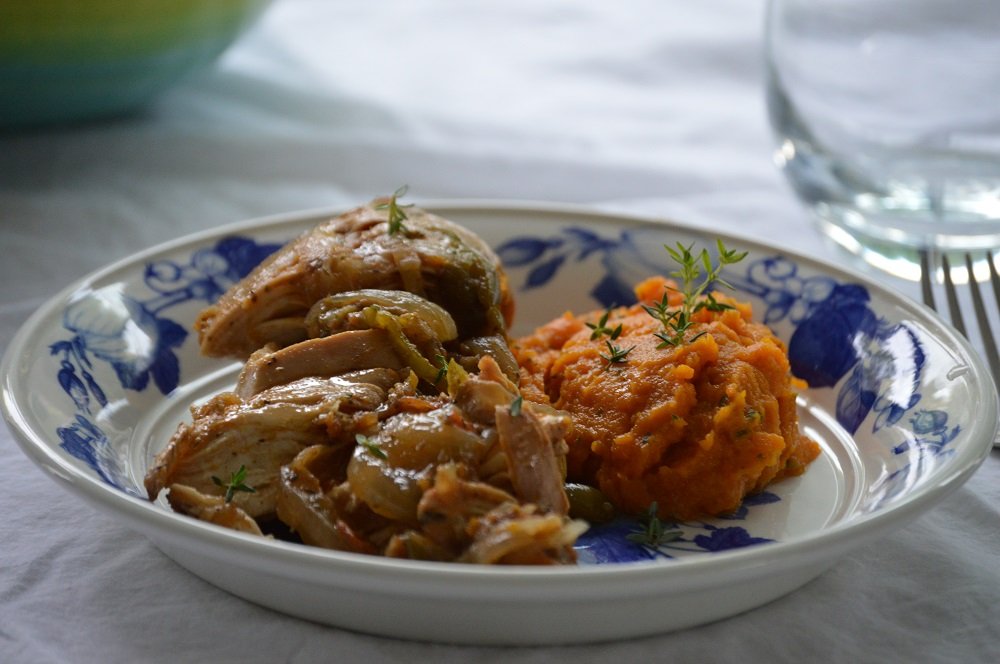 Pollo a la cerveza con puré de zanahorias cremoso