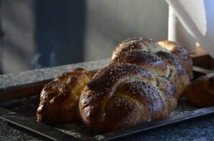 Jalá trenzada casera. un pan suave y dorado, con miel y semillas de sésamo. Una receta tradicional para celebrar y compartir, perfecta para preparar en casa y aprovechar cada miga.