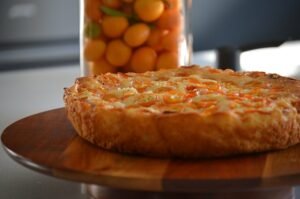 Torta húmeda de quinotos con crema suave de vainilla: una receta fácil, aromática y perfecta para aprovechar quinotos maduros. Ideal para la merienda o el té.
