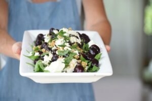 Ensalada de cerezas, ricotta y semillas crocantes