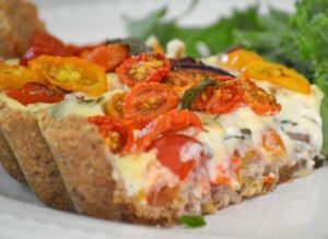 Tarta super fresca, y si los tomates y albahacas son de tu herta, mucho mejor!