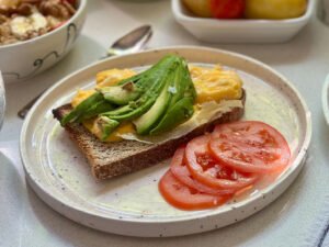 Receta de Tartine de huevo y palta de Laura Di Cola. Un desayuno funcional, equilibrado en grasas saludables y proteínas magras. Técnica profesional de preparación y montaje para una tostada nutritiva de autor.