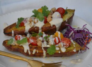 Batatas rellenas saludables y sin desperdicio: receta alta en potasio, fibra y proteínas vegetales. Ideal para deportistas, alimentación plant-based y una vida sana