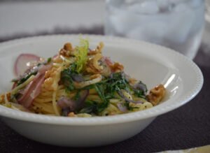 Fideos con raíces salteadas, receta saludable con rabanitos, hinojo y jengibre, ideal para una comida liviana, vegetal y llena de sabor.