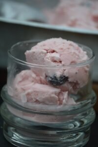 Helado cremoso de frutillas y arándanos