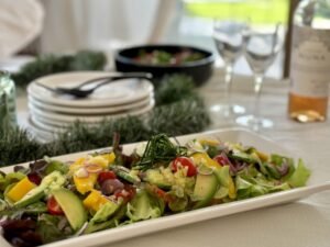 Ensalada fresca de mango y palta con vinagreta de piña, ideal para un almuerzo saludable y rápido.
