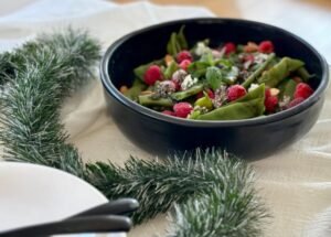 Ensalada de chauchas y frambuesas fresca y de verano, una receta rápida, colorida y sin desperdicio con frutos rojos y almendras.
