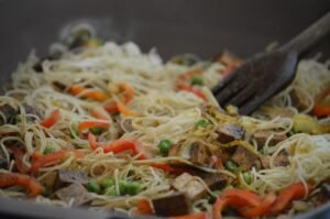 Fideos con tofu y vegetales salteados