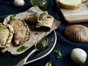 Empanadas de hongos, borraja y pesto
