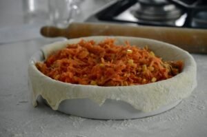 Masa firme para tartas abundantes, ideal para pascualinas, empanadas de horno y rellenos jugosos.