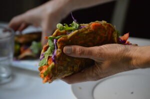 Prepará estos crepes de zanahoria y sarraceno, saludables, sin gluten y llenos de vegetales frescos para un almuerzo nutritivo y colorido.